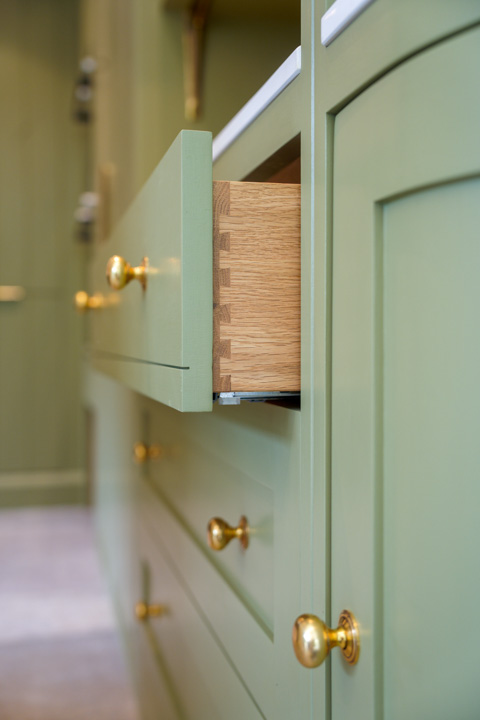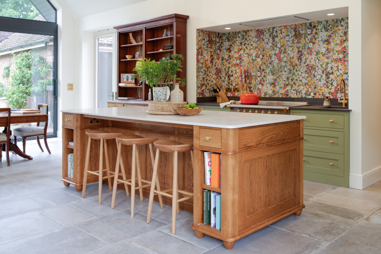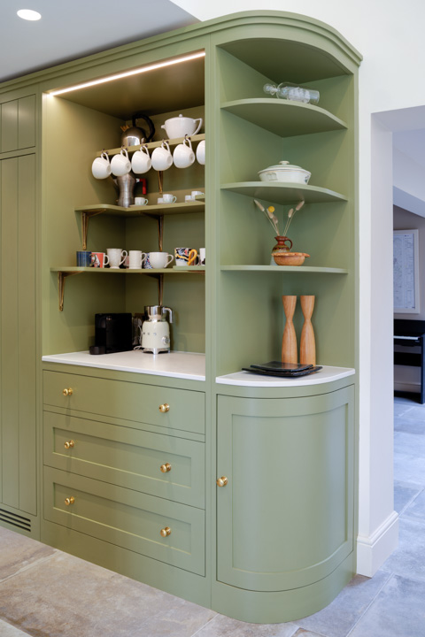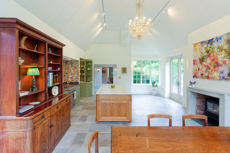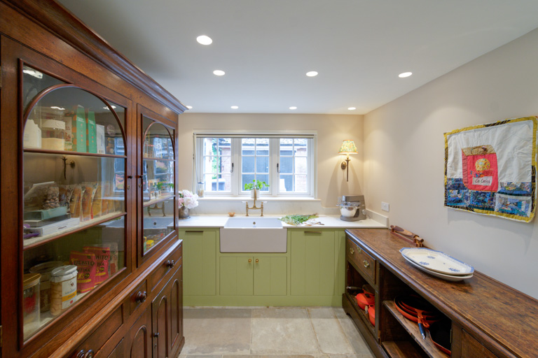 The kitchen and prep-kitchen were designed and crafted as fully bespoke pieces, thoughtfully tailored to complement the clients' cherished antique furniture.